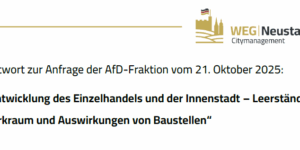 Obwohl die Presse die Antwort bereits über eine Woche vorher vorliegen hatte, haben wir sie nochmals vollständig geprüft und am 14.11.2025 direkt die nächste Anfrage eingereicht. Antwort auf Anfrage: Innenstadt …